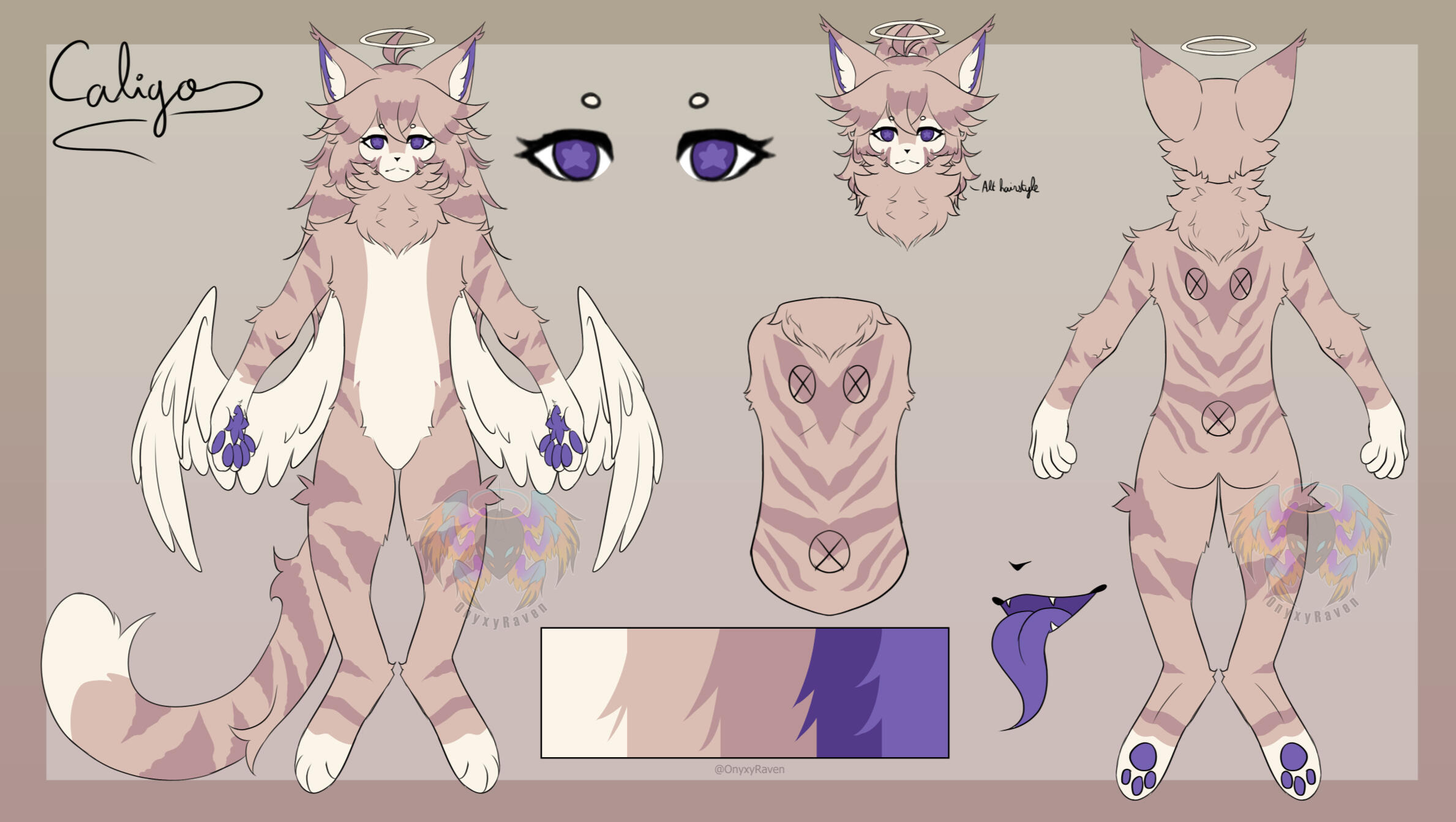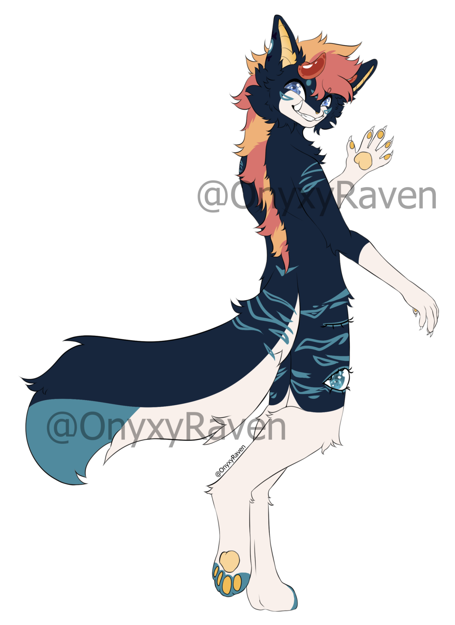For furries/humanoids: one symetrical fullbody, color palette, eyes close-ups, mouth close up, back close up, name.For ferals/animals: one fullbody profile view, color palette, eyes close-ups, mouth close up, back close up, name.